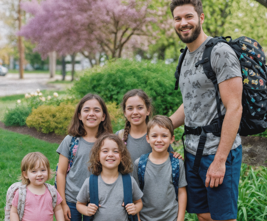 Aujourd’hui, James se tenait devant leur maison baignée de soleil, vêtu d’un short cargo et d’un t-shirt orné de dinosaures — un choix dicté par les jumeaux, ses compagnons inséparables. Sa barbe, parsemée de fils argentés, témoignait des années passées à porter sacs, cartables et enfants encore endormis.
