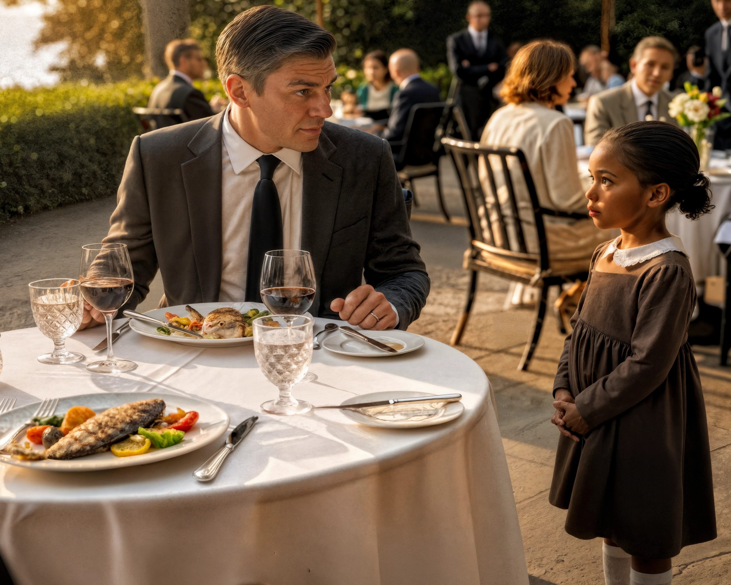 Le restaurant se tut. Les clients se tortillèrent sur leurs chaises, certains raillant l’enfant d’avoir osé entrer dans un endroit aussi exclusif. Un serveur se précipita, chuchotant : « Monsieur, je la fais sortir tout de suite. »