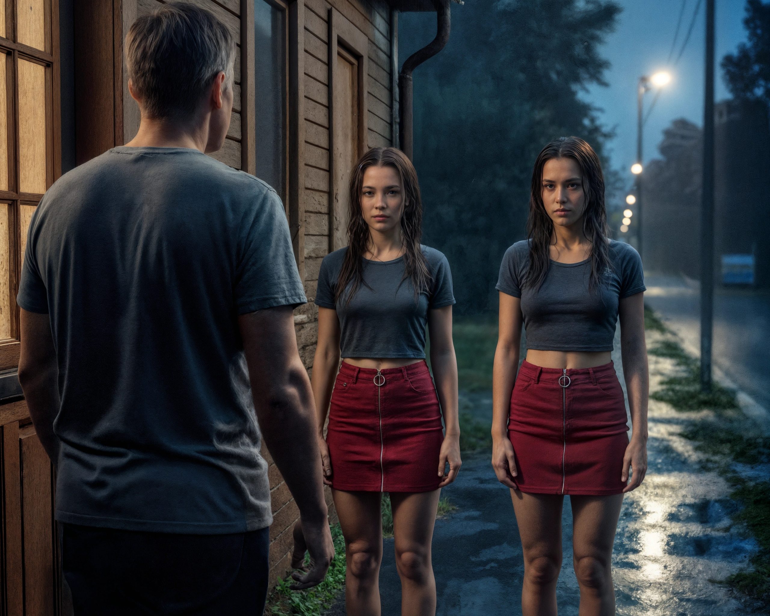 Alors que David parcourait des factures, on frappa à la porte. Il était tard, et il n’attendait personne. Prudemment, il ouvrit et découvrit deux adolescentes trempées jusqu’aux os, pas plus âgées que seize ans, debout sur le pas de sa porte. Elles avaient l’air inquiètes et grelottaient de froid.