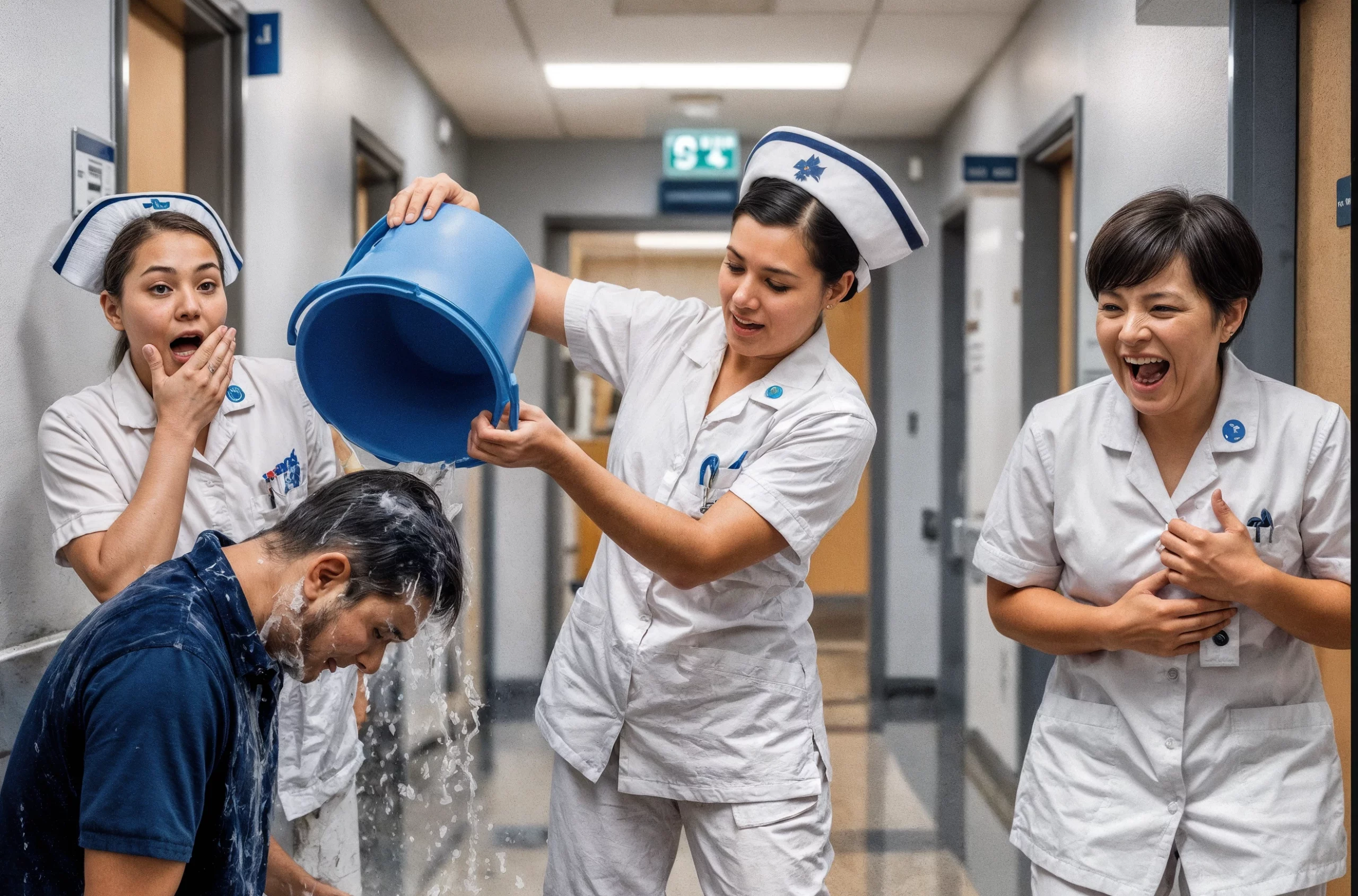 — Hé, c’est pas la fille venue pour le poste d’infirmière ? Et maintenant, une serpillière à la main !