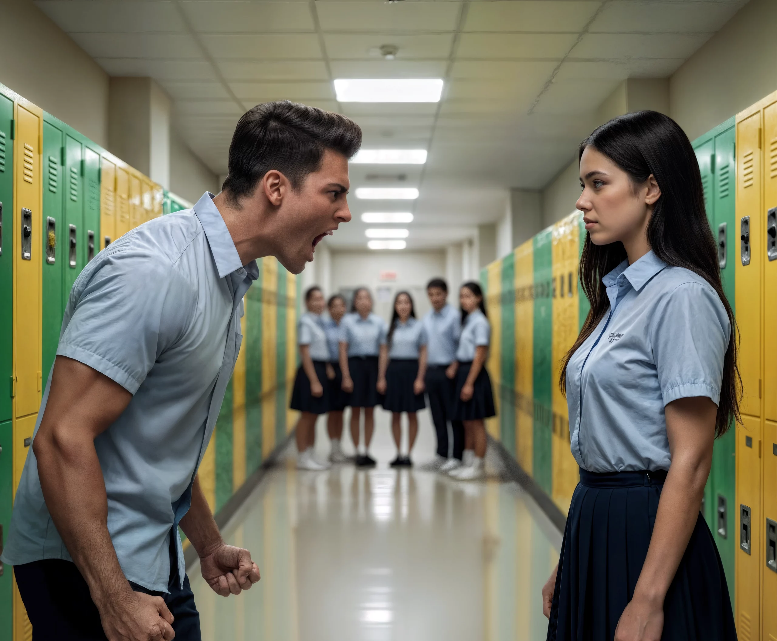 Personne n’osait le défier. Coups, insultes, humiliations : c’était son quotidien. Jusqu’au jour où **elle** est arrivée. Sofía ne ressemblait à aucune menace. Fine, silencieuse, avec une fragilité apparente qui en faisait la victime parfaite. Mais Marcos ne savait pas qu’il s’apprêtait à commettre la plus grosse erreur de sa vie. Ce qui s’est passé ensuite a choqué toute l’école — et a marqué Marcos à jamais.