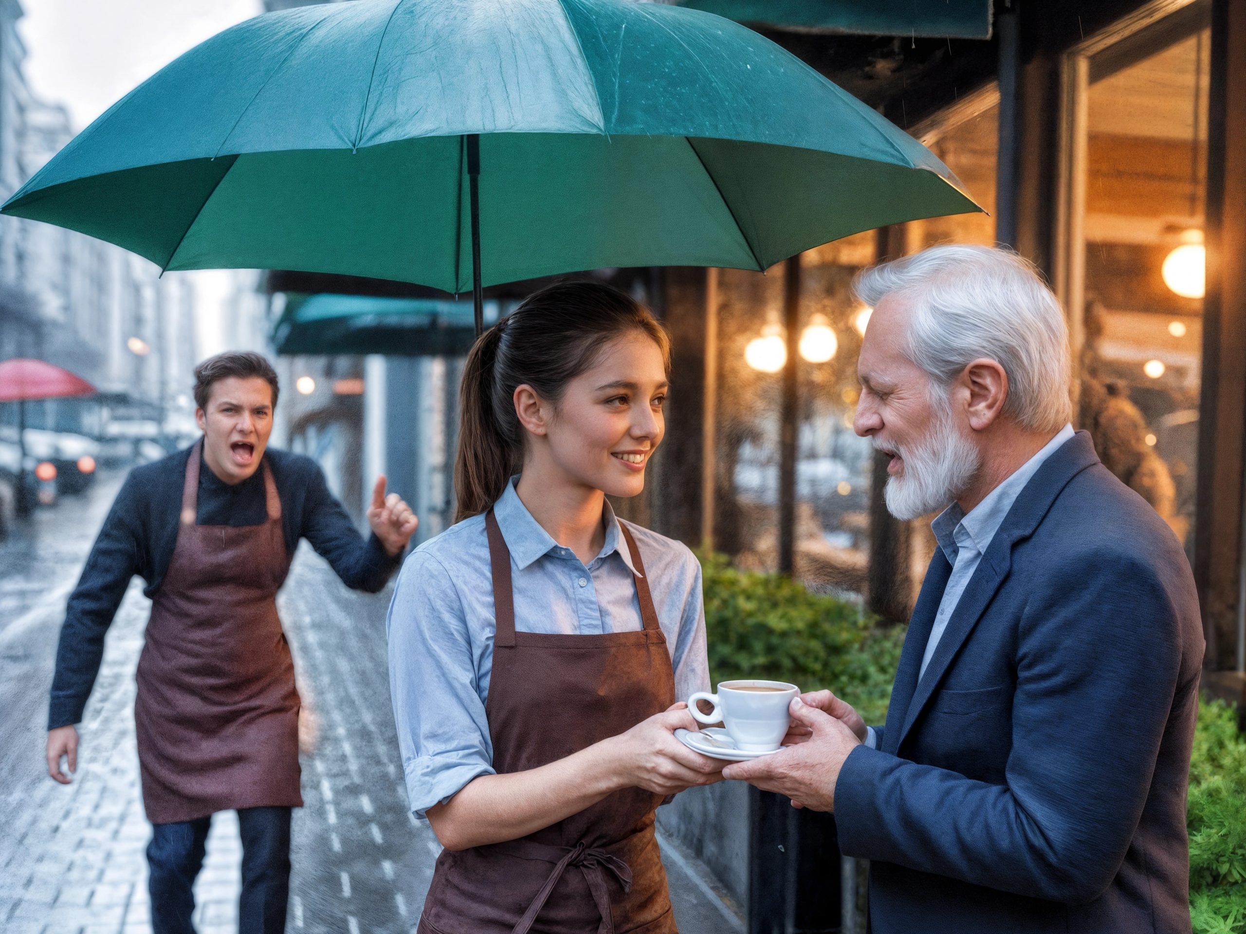 Les mots la frappèrent comme un coup de poing. Renvoyée. Juste comme ça. Le sol semblait se dérober sous ses pieds. Les regards des clients la transperçaient comme des couteaux. Elle aperçut Bruno, l’autre barista, figé, la bouche entrouverte sous le choc. Dans le coin, le vieil homme paraissait effondré de stupeur, comme s’il était, d’une certaine manière, responsable.