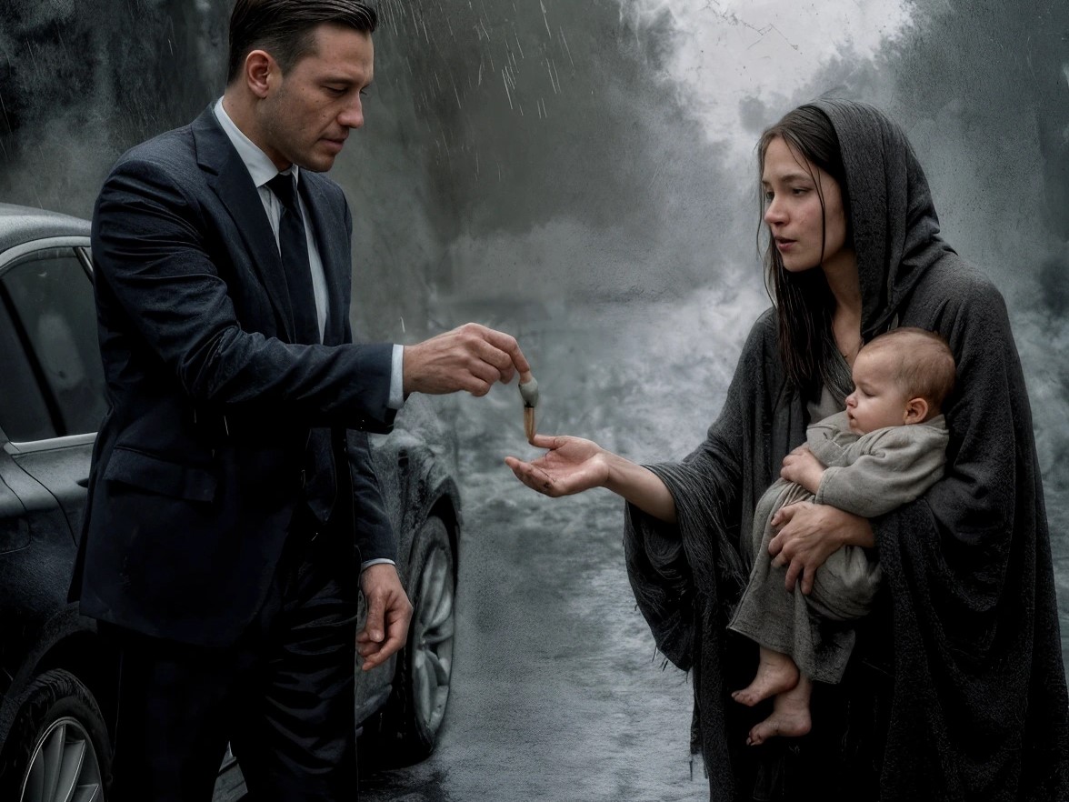 À un feu rouge, son regard glissa machinalement vers le trottoir. Là, recroquevillée contre un mur, une jeune femme protégeait un enfant en le pressant contre sa poitrine. Son manteau, usé jusqu’à la trame, était trempé ; l’eau ruisselait de ses cheveux, et ses bras maigres entouraient le petit corps avec une tendresse désespérée, comme si elle pouvait, à elle seule, le mettre à l’abri du monde.