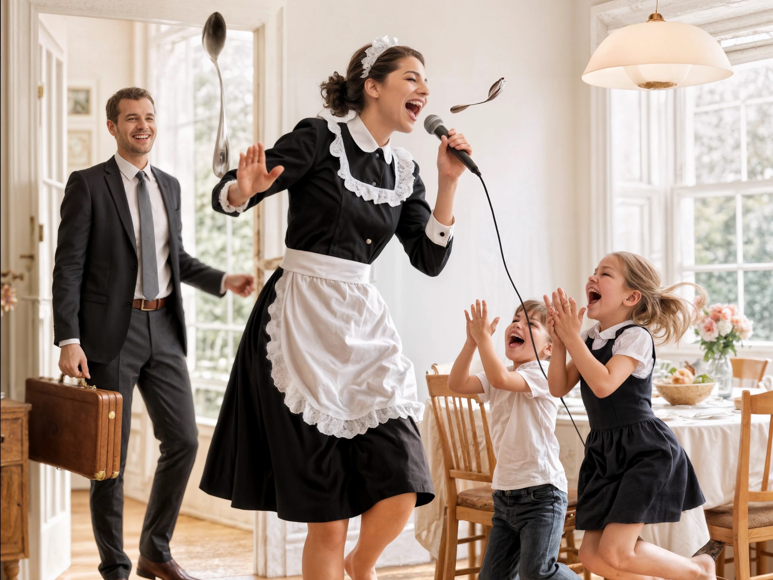 Ethan et Lily riaient à nouveau, cette fois en apprenant à Rosa une danse farfelue apprise à l’école. Le lustre au-dessus d’eux scintillait d’une lumière dorée, la pièce résonnait de joie, et le cœur d’Adrian se remplit d’un bonheur qu’il n’avait jamais connu.