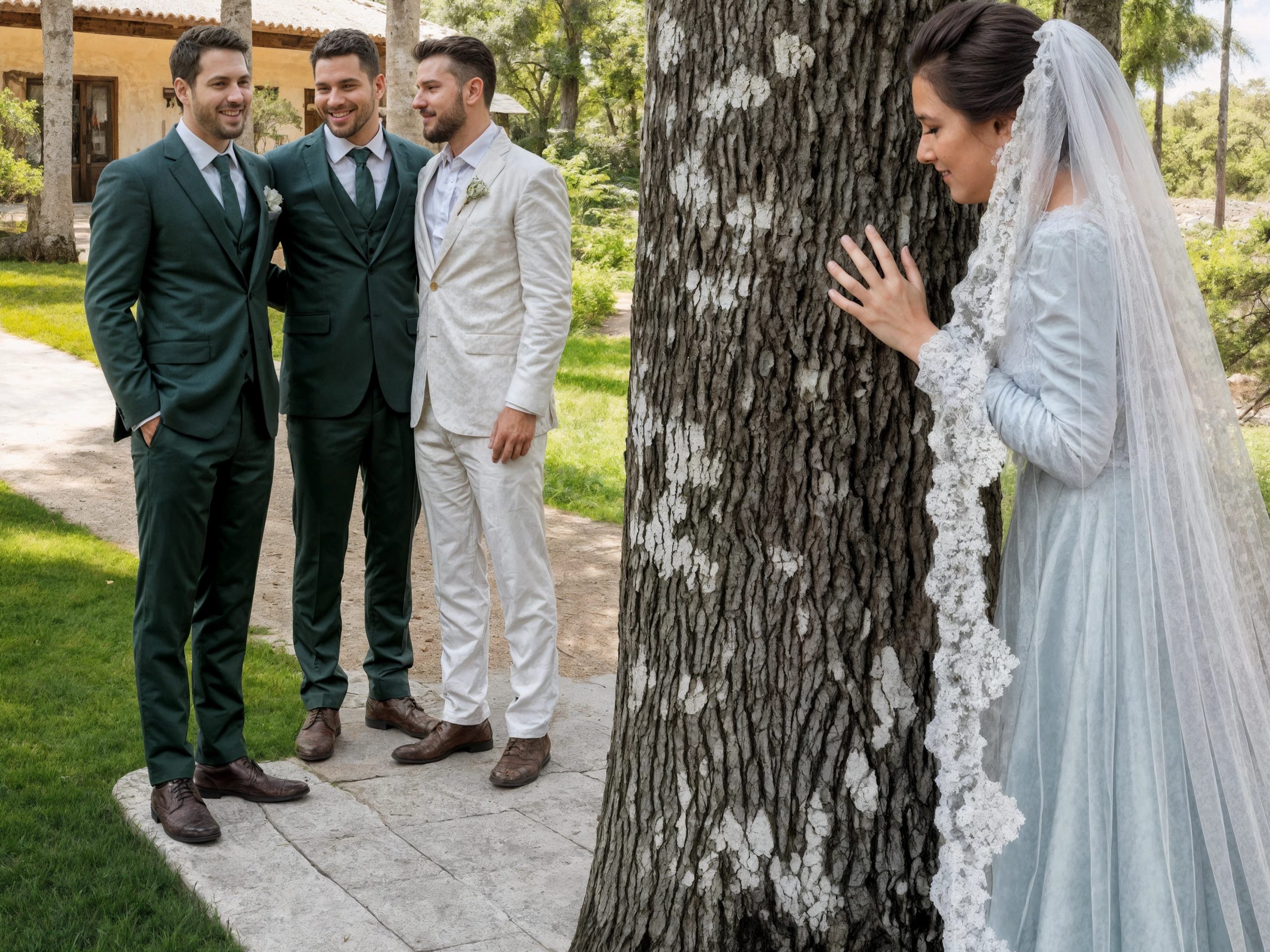 Derrière un groupe de palmiers décoratifs, elle entendit des rires d’hommes. Elle reconnut aussitôt la voix de Rafael : assurée, pleine d’aplomb… cette même voix qui l’avait toujours apaisée — du moins le croyait-elle. La curiosité l’attira, à pas silencieux, presque sans respirer, le cœur battant d’une façon étrange.