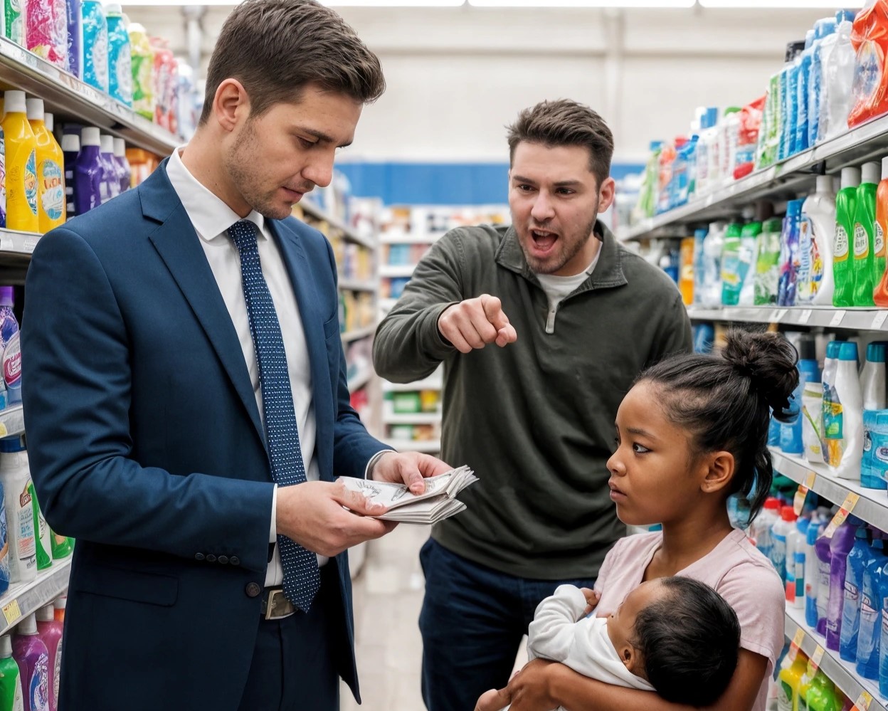 La phrase venait d’une enfant plantée au beau milieu de l’allée centrale d’un supermarché, là où les chariots se frôlent et où les regards se détournent vite. Elle devait avoir huit ou neuf ans. Son haut était usé jusqu’à la trame, ses chaussures n’étaient pas de la même paire, et dans ses bras trop fins elle retenait deux choses à la fois : un bébé endormi contre sa poitrine… et une brique de lait serrée comme si c’était un trésor.
