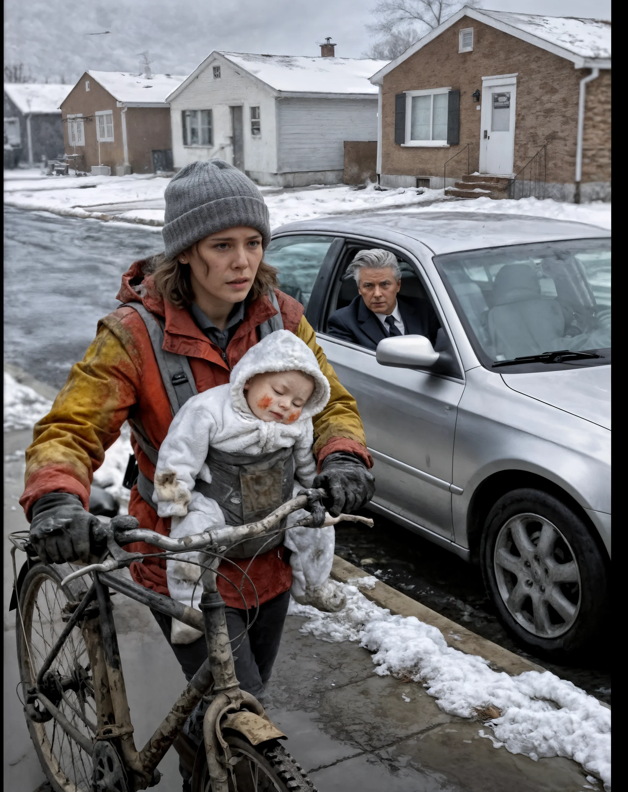 Je suis entrée dans la chaleur de la voiture, Noah contre moi. L’air chauffé nous a enveloppés, avec une odeur de cuir et quelque chose de coûteux. Le vélo est resté dans la neige, abandonné — comme une version plus ancienne de moi-même. Mes yeux me brûlaient.
