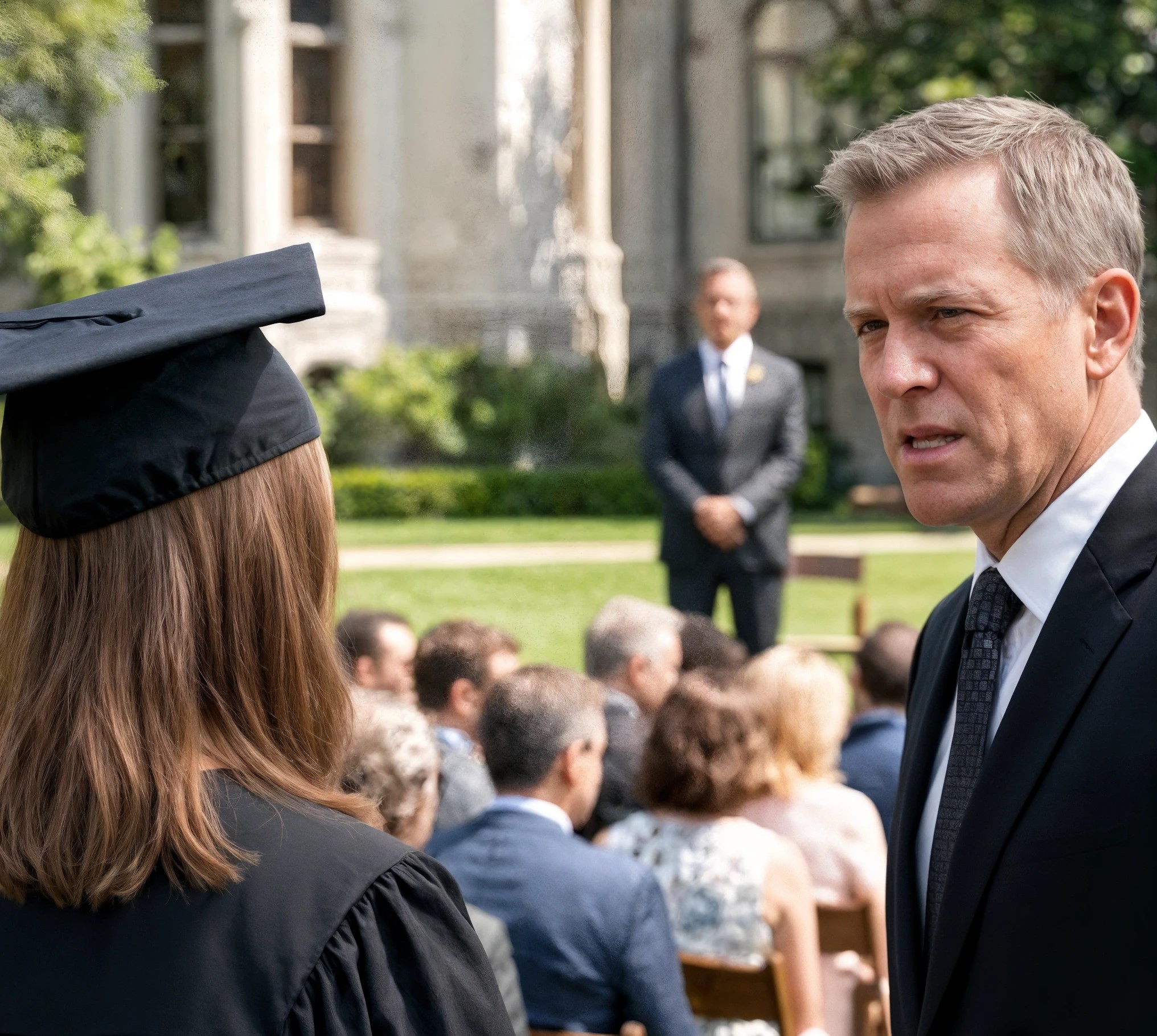« Les plans changent », m’avait-il dit plus tôt ce matin-là, au-dessus d’un petit-déjeuner froid. Apparemment, les remises de diplômes aussi.