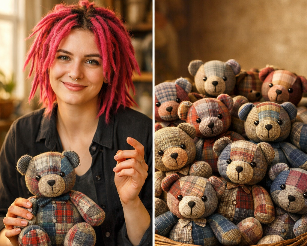 Il a terminé tard un dimanche soir. Vingt nounours étaient alignés parfaitement sur la table de la cuisine. Chacun avait sa propre personnalité.