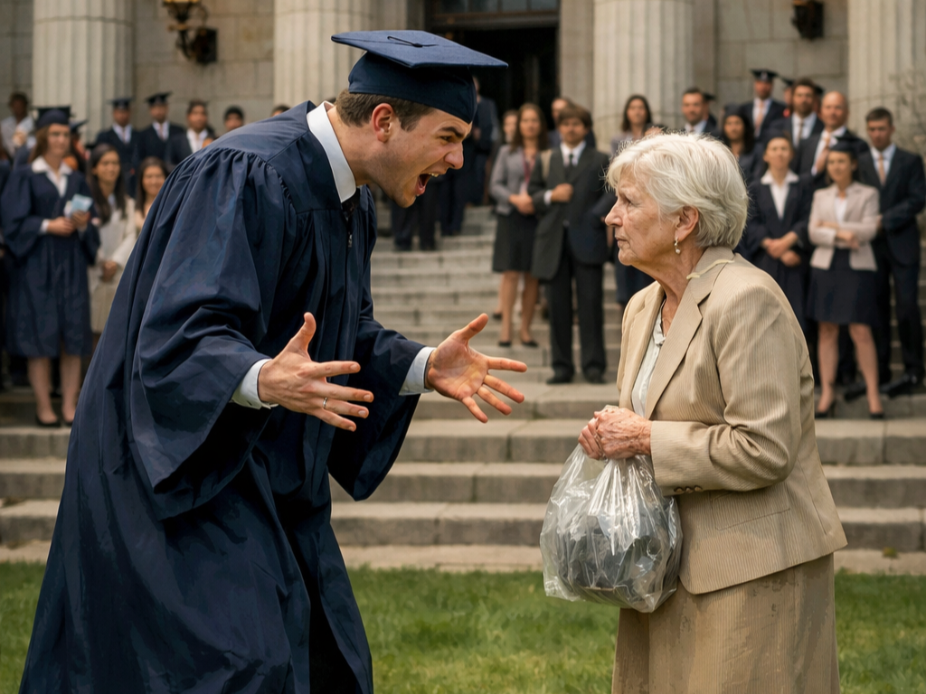 J’ai crié : « Pars d’ici—Tu n’as pas ta place ici ! » à ma propre mère lors de ma remise de diplôme, pensant protéger mon avenir—jusqu’à ce que, quelques minutes plus tard, un détail silencieux commence à ébranler tout ce en quoi je croyais.